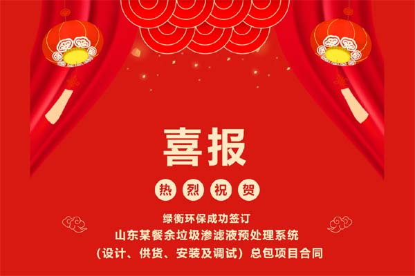 綠衡環保中標山東某餐余垃圾滲濾液預處理總包(設計、供貨、安裝...